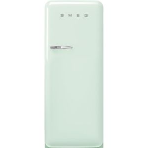 Привлекая эстетику 50-х годов, холодильник Smeg FAB28RPG5 представляет собой свежий вклад в домашний интерьер. Этот отдельностоящий холодильник-морозилка сочетает в себе элегантный глянцевый внешний вид с пастельно-зеленым оттенком и хромированными ручками, создавая безусловный центр внимания в любой кухне.